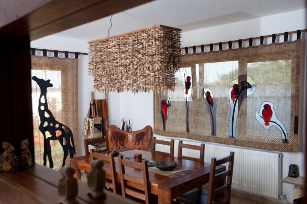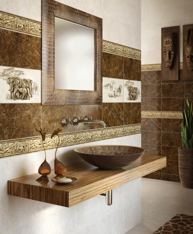 - В качестве декора используются деревянные маски, предметы из керамики, фигуры африканских животных и аборигенов, картины с африканскими пейзажами и сценами охоты.