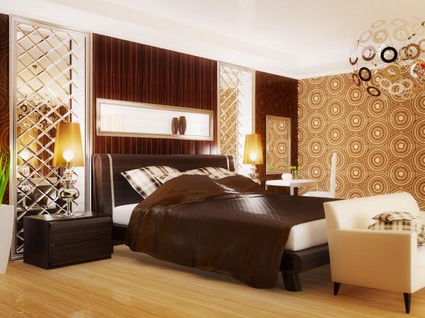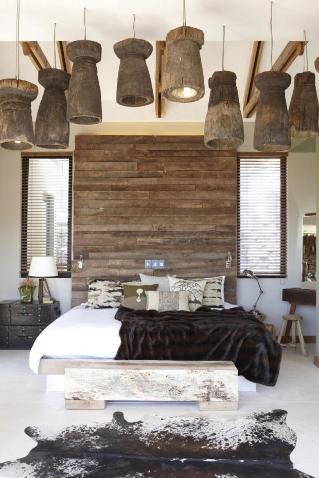 - Отделайте пол деревом и постелите возле кровати шкуру животного или ворсистый однотонный ковер.