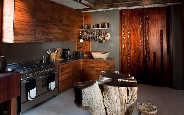 Есть немало стройматериалов, которые подходят для отделки поверхностей – камень, дерево, обои с характерным для Африки узором.