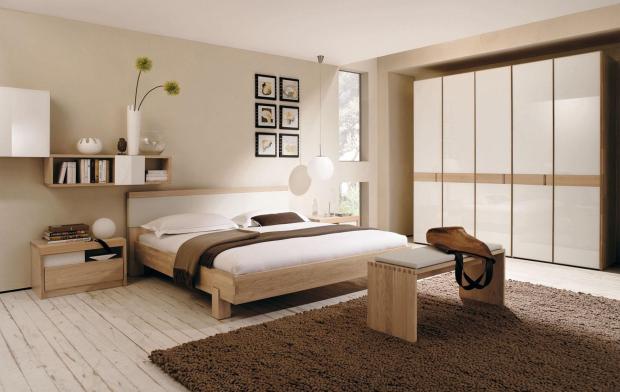 Так, спальня со светлой мебелью в интерьере удачно дополняется легкими и светлыми пастельными тонами обоев, штор или коврового покрытия.