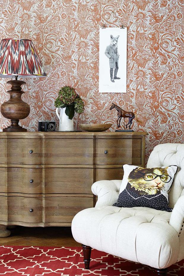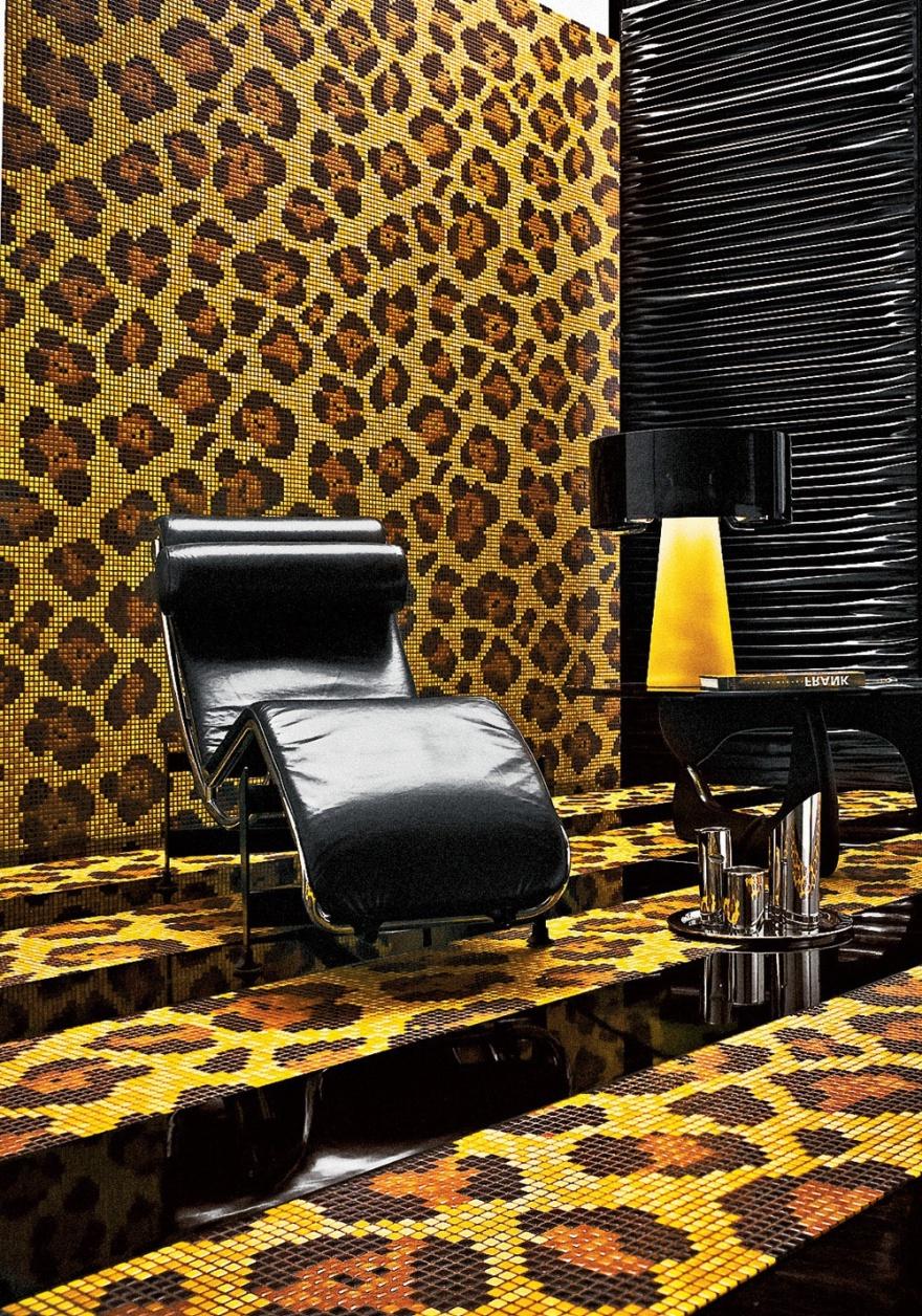 Интересно выглядит настенное покрытие "под звериную шкуру", но если оно очень яркое, им лучше декорировать одну стену или ее часть, особенно если узор мелкий.