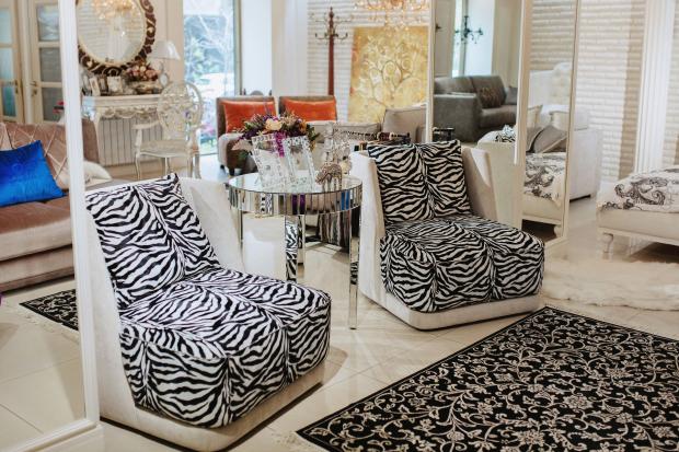 Не обязательно подбирать декор, точно копирующий окрас животного — черно белая или окрашенная в нехарактерные цвета стилизация окраски леопарда, зебры или жирафа смотрится, зачастую, даже более выигрышно.