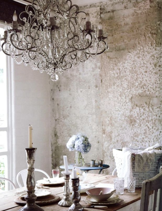С преобладанием кирпича, особенно искусственно состаренного, создаются интерьеры в стиле средневекового замка с большим камином, арками, обложенными кирпичом, каменным полом и иными характерными для стиля элементами.