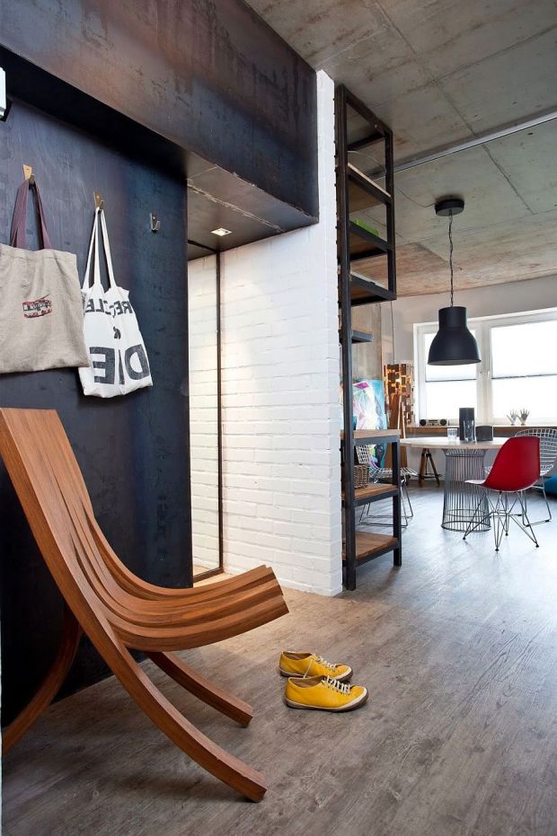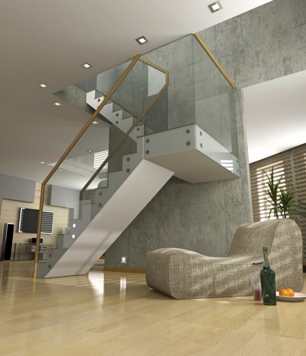 Дизайнеры создают потолок, пол, стены под бетон в интерьере с желаемой фактурой и цветом, а из металла делают, например, лестницы, перекладины, которые монтируются к потолку на манер деревянных балок или стойки, прикрепленные к стенам.
