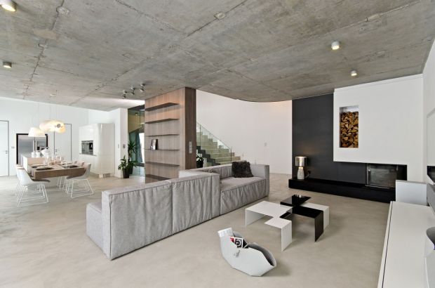 Если до этого времени материал воспринимался только, как черновая отделка, то теперь с его помощью создают дизайн, который включает в себя даже предметы интерьера из бетона – лестницы, вазы, столы, кресла.