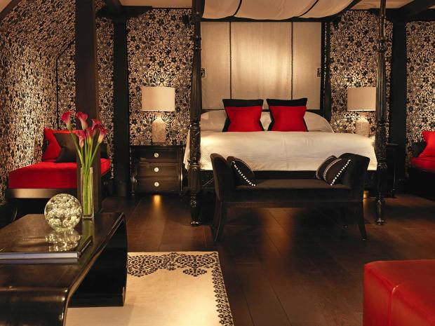 Еще один вариант стиля – страстный и экстравагантный. Контрасты черного, серебра, фиолетового, бордо, холодного розового и ярко-красного. Нейтральных оттенков может быть несколько, ярких предпочтительно один-два. Мебель и декор серебристых оттенков.