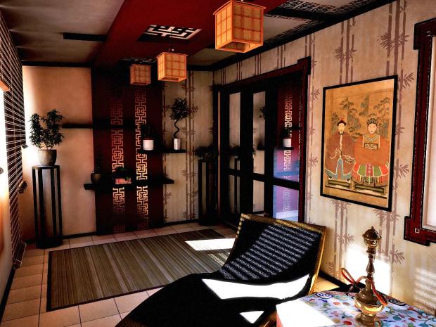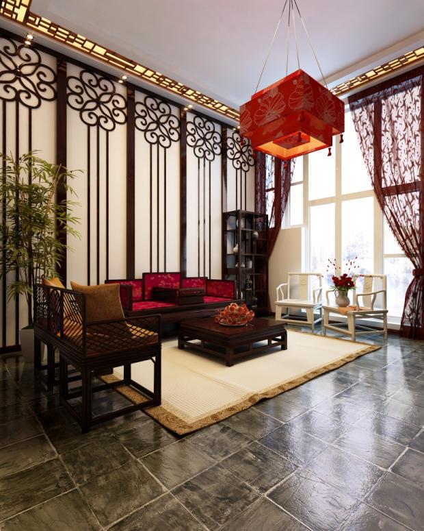 При определенной схожести с японским стилем, китайский гораздо массивнее. Такой интерьер отдает предпочтение красным тонам, пестрым и острохарактерным узорам и темному дереву. Мебель, как правило, проста и приземиста – традиции функциональности придерживаются и в Китае.