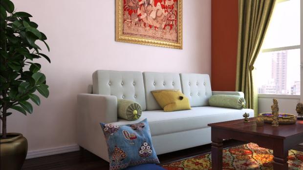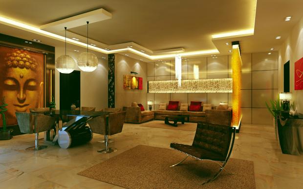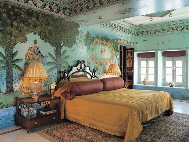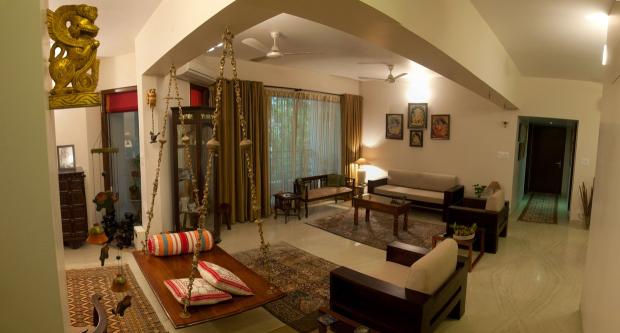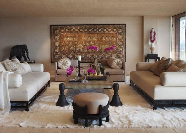 Индийский стиль в интерьере – это в первую очередь сложная вышивка на драпировочных тканях, резьба по дереву (преимущественно лакированному) и множество характерных аксессуаров: тигры, слоны, элементы индуистских верований.