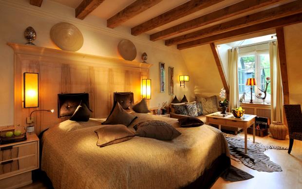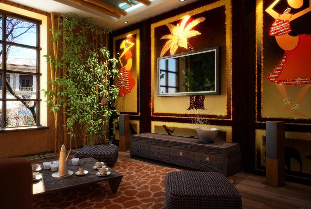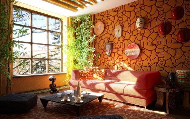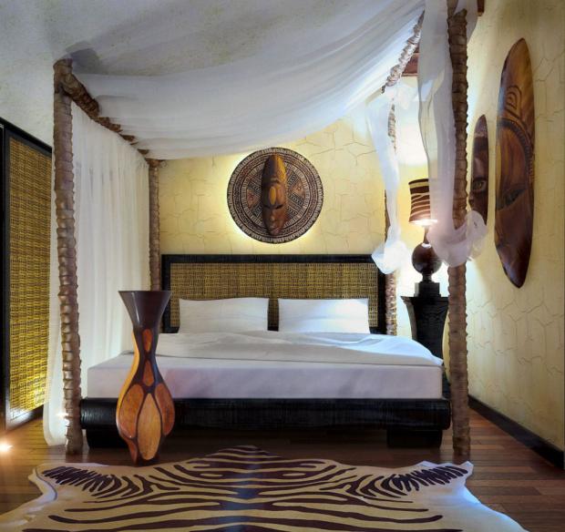 Еще один вариант для тех, кто устал от холода. африканский стиль легко узнаваем своей первобытной естественностью. Он легко принимает в себя шкуры животных – хотя с леопардовой расцветкой дизайнеры ТопДом рекомендуют быть осторожнее – глубокие, преимущественно красно-коричневые цвета и натуральную деревянную мебель.