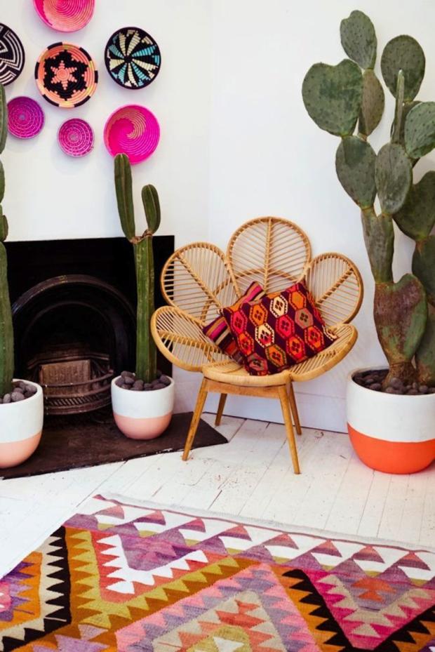 Стиль для тех, кто скучает по солнцу, краскам и теплу. Цвета таких интерьеров: оранжевый, бирюзовый, малиновый. Неизменно яркие и насыщенные, но помещенные в необходимый колорит, они совсем не режут глаз.