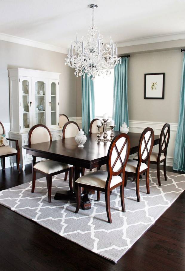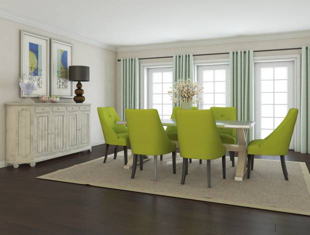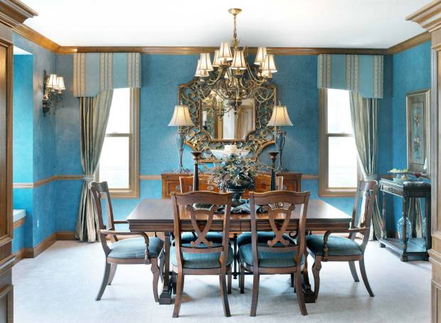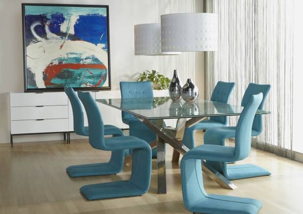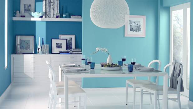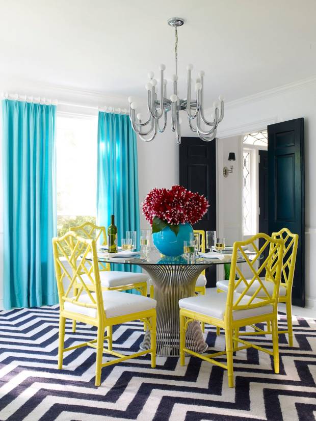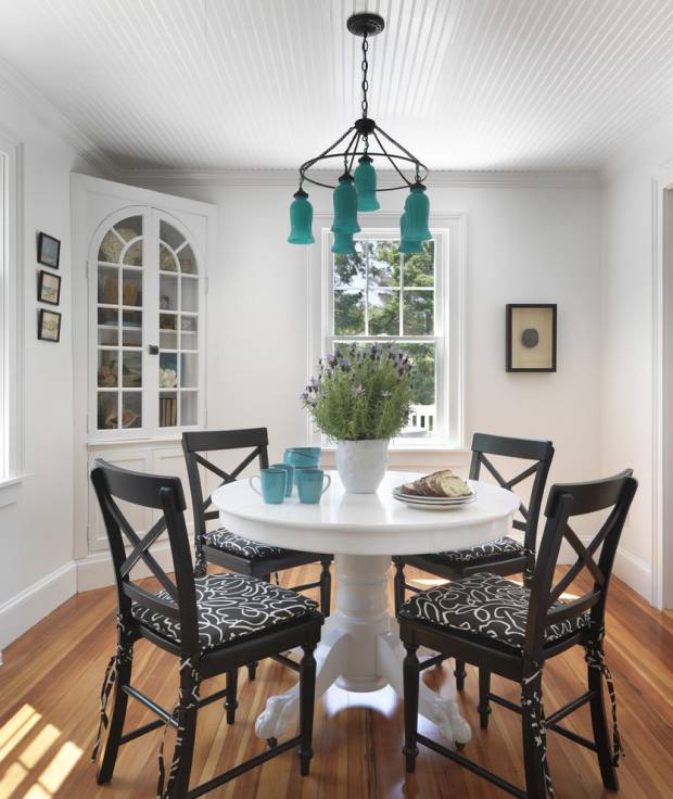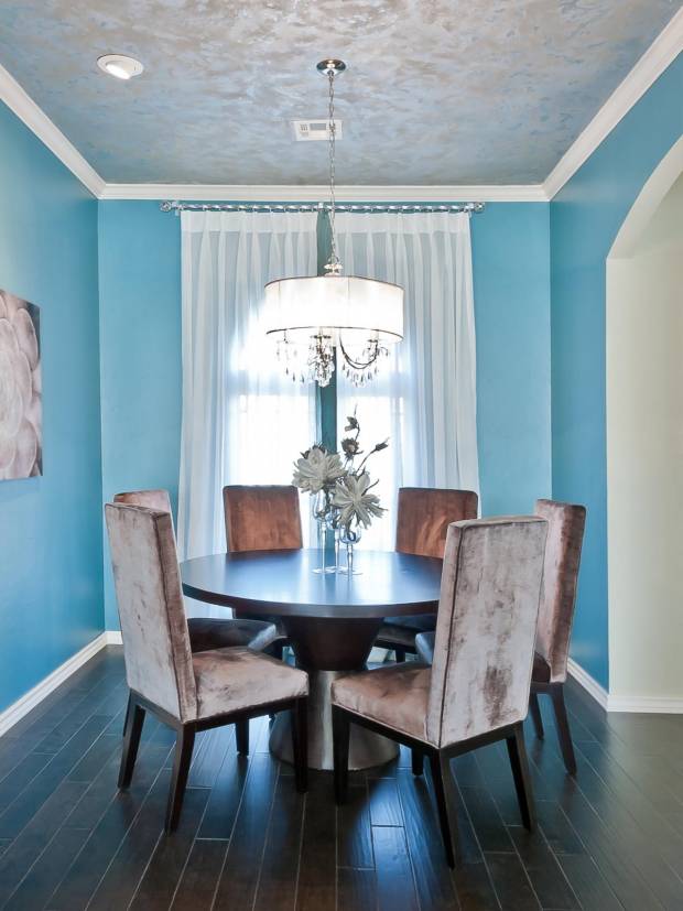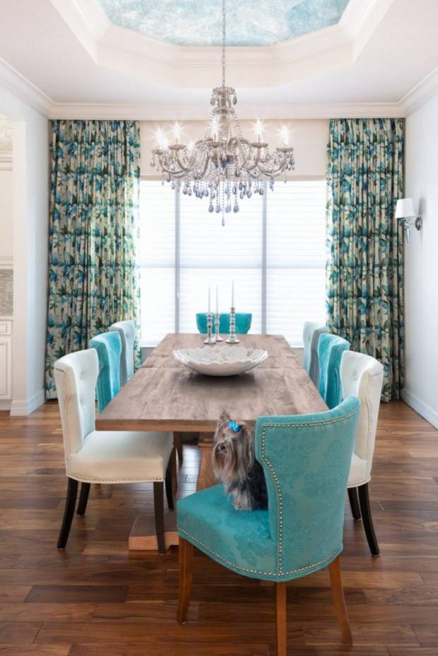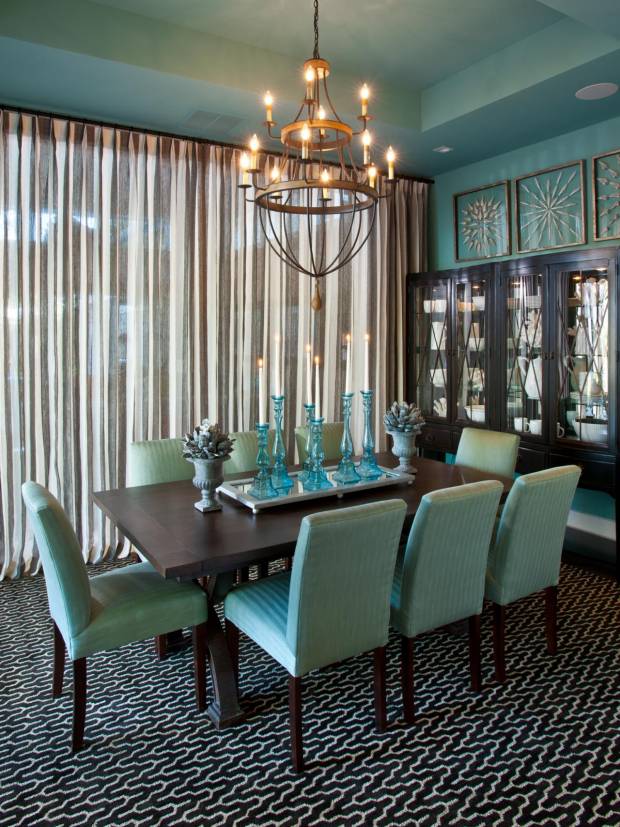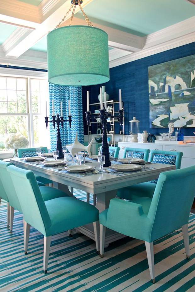 Этот цвет придает помещению свежесть. Тон приятный для глаз и легкий для восприятия. Дизайнеры рекомендуют с помощью бирюзового цвета выделять в столовой желаемые акценты (например, шторы, мягкий уголок, стулья, одну из стен).