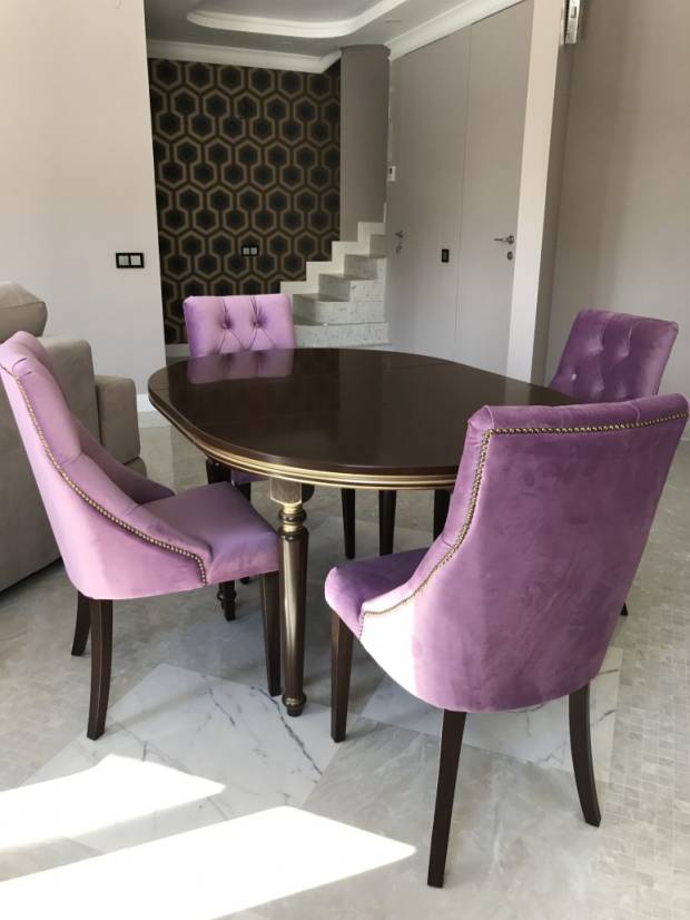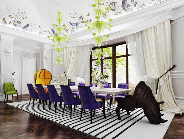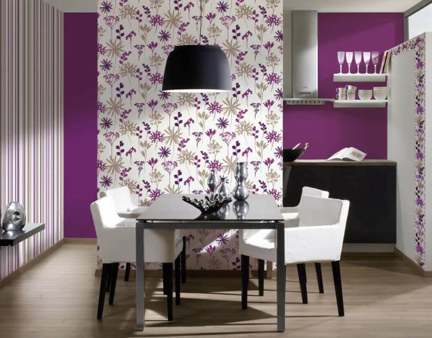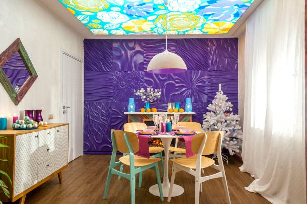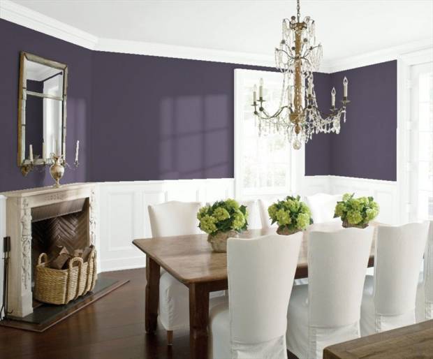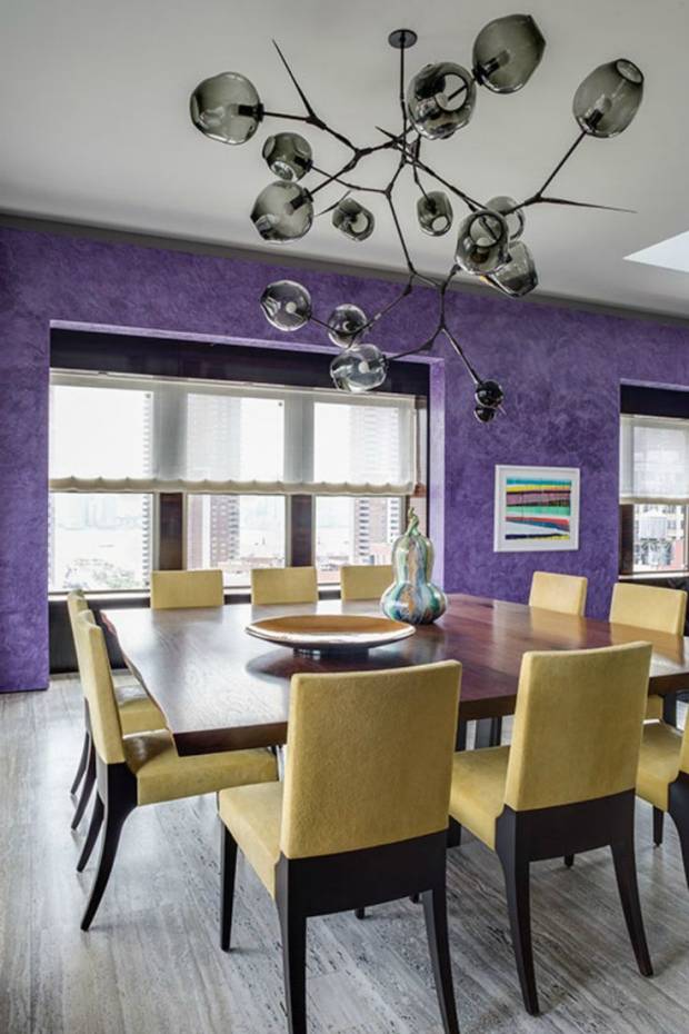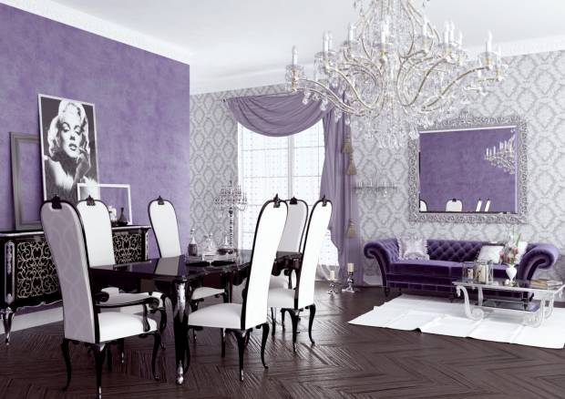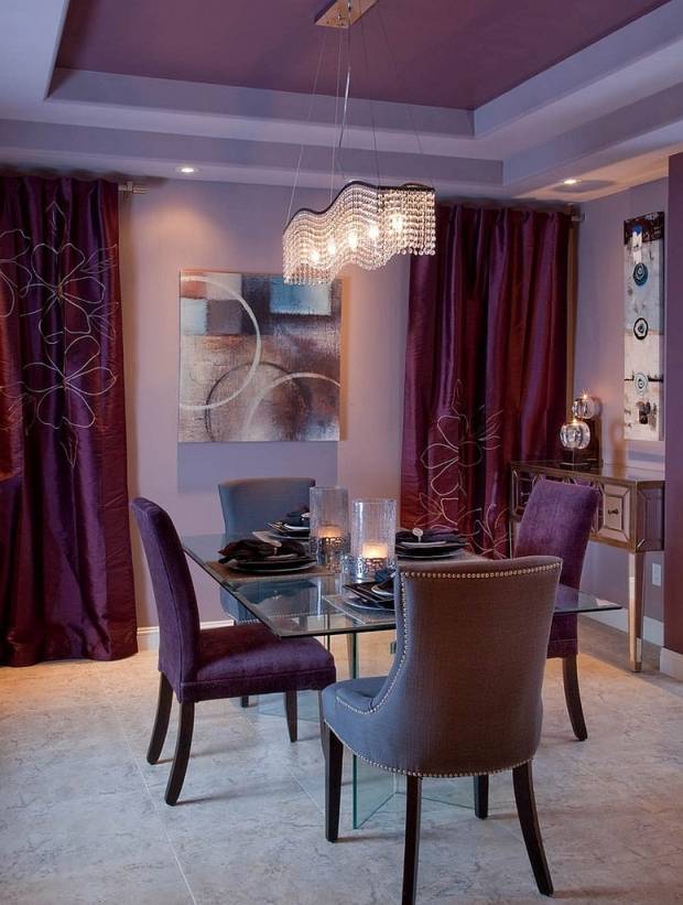 Еще издавна фиолетовый цвет считался царским, так как нередко использовался в интерьере дворцов. Он придаст столовой шик и элегантность. Однако важно с ним не переусердствовать.
