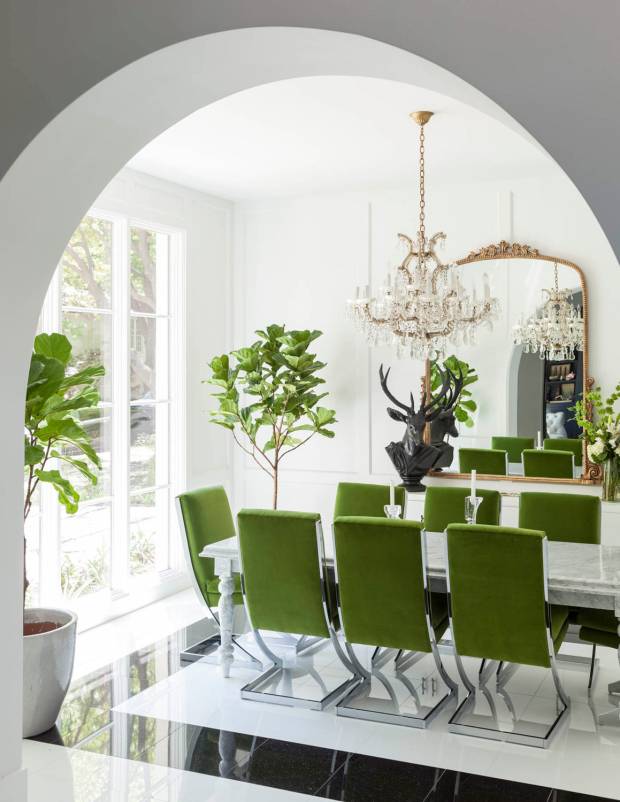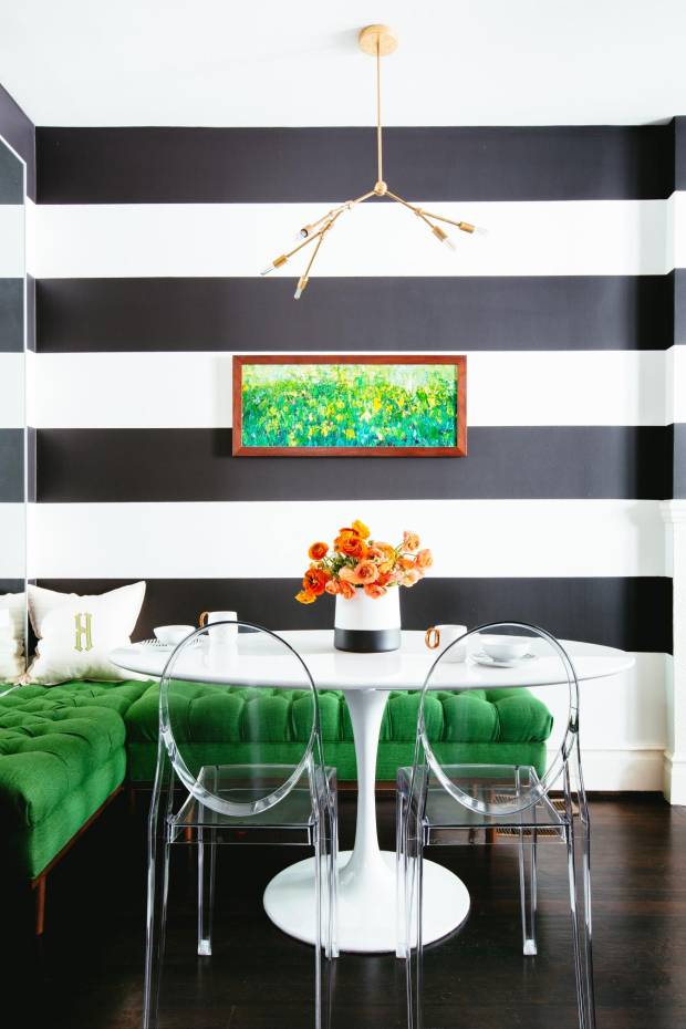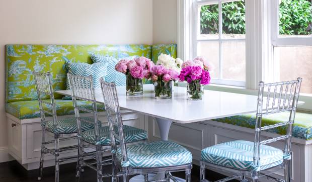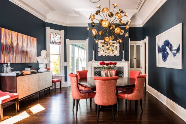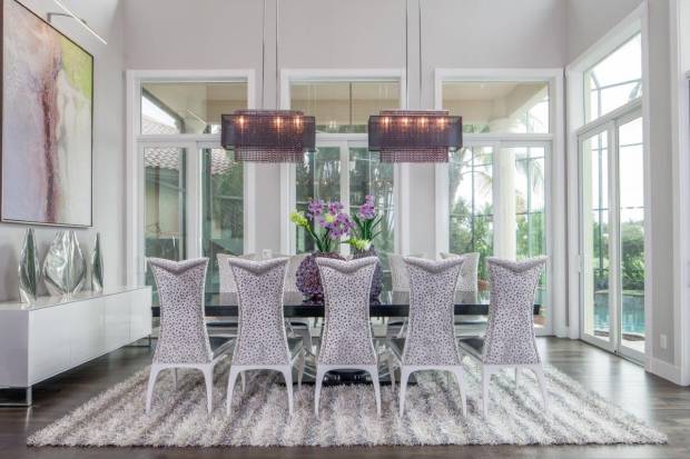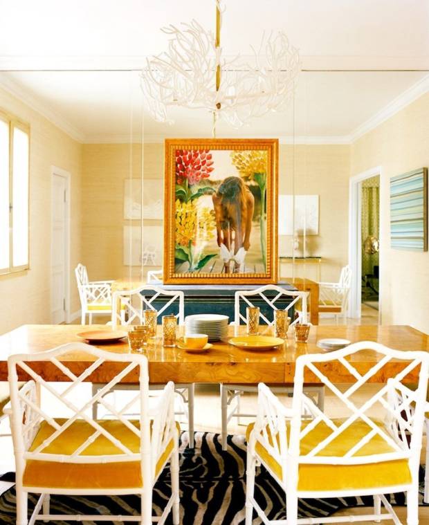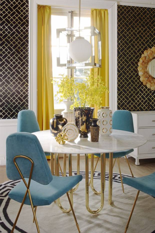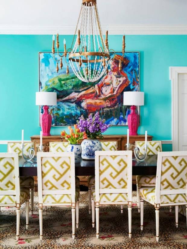 Если вы думаете, в какой цвет покрасить столовую в современном стиле, чтобы она была выразительной, выбирайте цвет маджента. Но, как и в случае с другими яркими и насыщенными тонами, не делайте его главным, а сочетайте, лучше всего с черным, серым или белым.