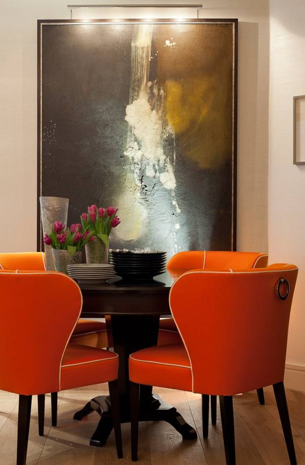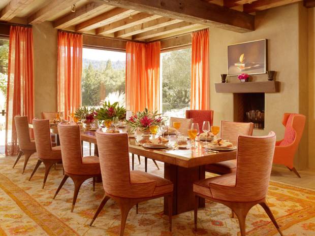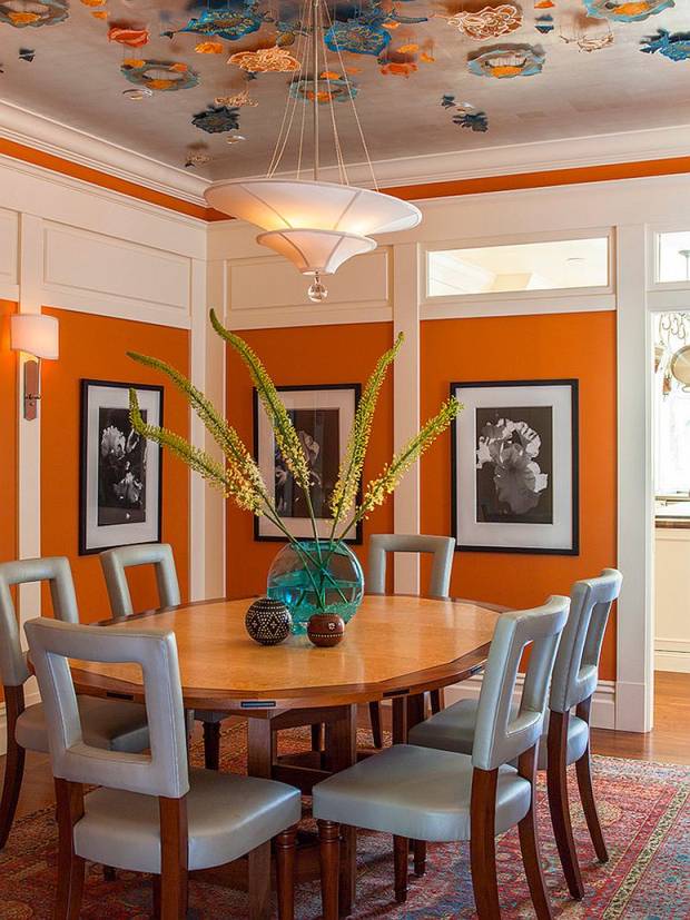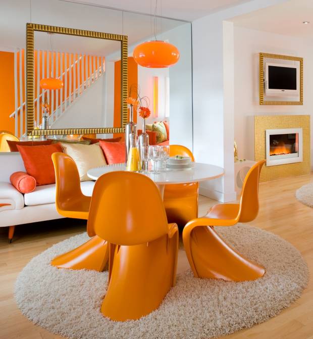 Столовая в оранжевом цвете – популярное и современное решение. Оранжевый, как и желтый, дарит ощущение лета, ассоциируется со спелыми фруктами и пробуждает аппетит.