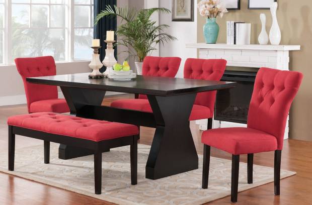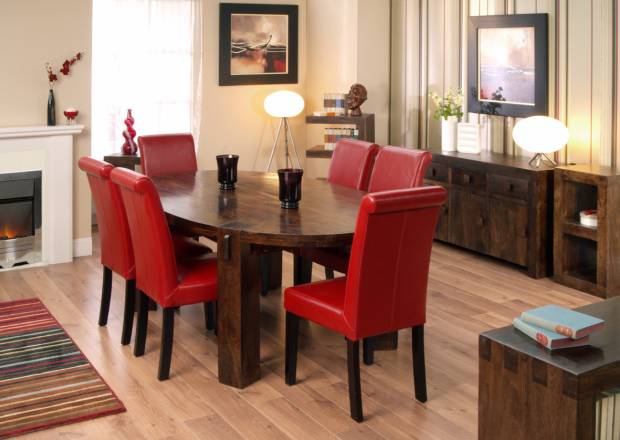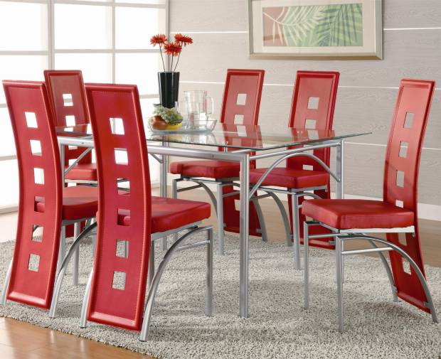 Цвет яркий, динамичный и подходит по темпераменту далеко не всем. Столовая в красном цвете будет выглядеть выразительно и современно, особенно если красный будет выражен на глянцевых поверхностях.