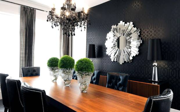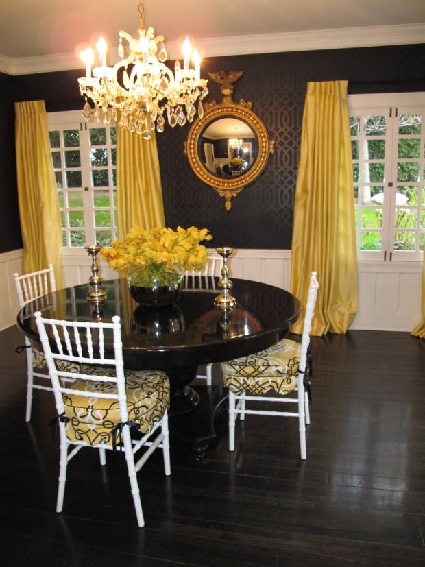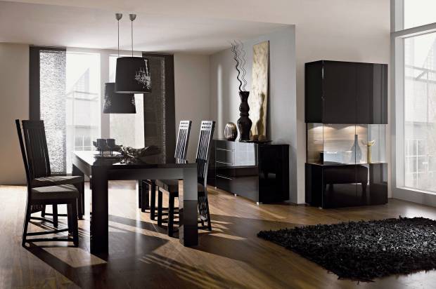 Несмотря на то, что черный также сочетается со всеми расцветками, не делаете его в столовой доминирующим тоном. Некоторых людей он будет психологически перегружать, а в столовой хочется принимать пищу в комфортной обстановке. Допустимы в столовой дуэты черного с красным, белым, розовым, зеленым.