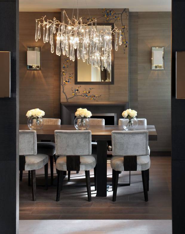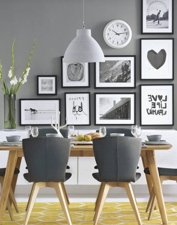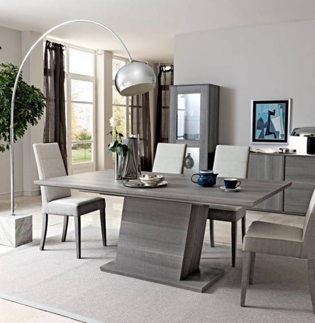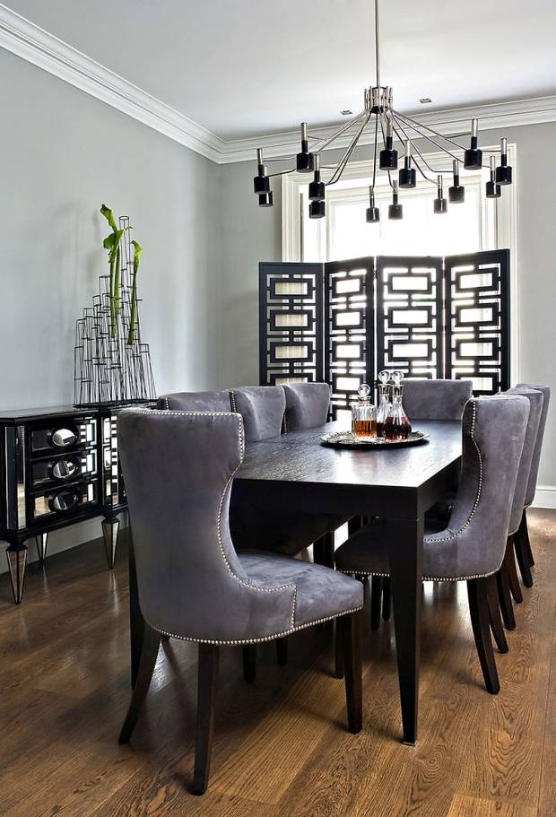 Чтобы столовая серого цвета не казалось скучной, не делайте классический серый тон главным. Такое решение на любителя. Серый впишется в практически любую обстановку. Эффектно дополнит дизайн столовой в сером цвете розовый, голубой и фиолетовый. Довольно интересное дизайнерское решение – серая столовая (на манер черно-белой фотографии) и один или несколько ярких предметов, например, розового цвета.