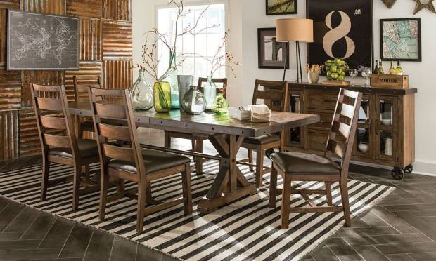 Коричневый и все его оттенки также нередко задействуются в интерьере столовой. Чаще всего он представлен в виде деревянных поверхностей.