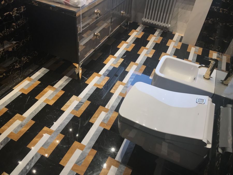 Пример такой работы – выполненная мастерами "ТопДом" отделка интерьеров квартиры камнем и деревом. В процессе ремонта смонтированы встроенные гардеробные шкафы, дверные проемы окантованы контрастной черной вставкой, потолки – рельефными фризами, санузлы облицованы мрамором нескольких видов с инкрустацией. Необходимые инженерные конструкции органично вписаны в декор: в паркетный пол аккуратно встроены вентиляционные решетки, технические ниши в ванных комнатах замаскированы мраморной обшивкой.