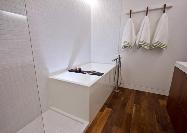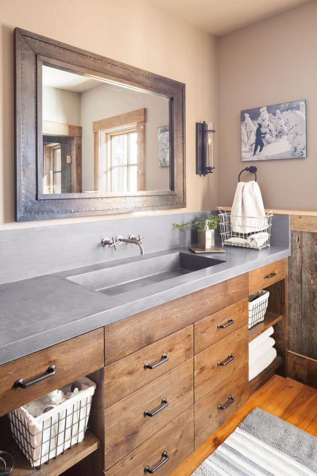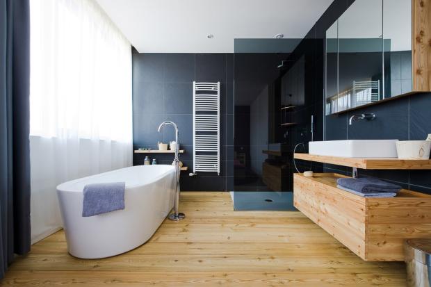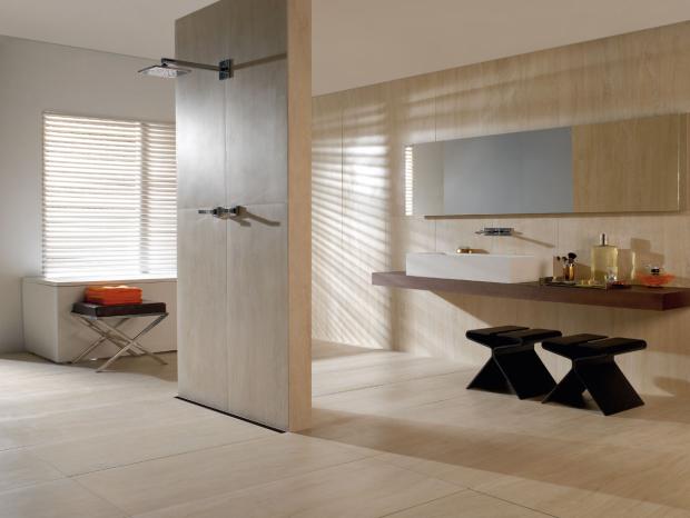 Пол сделайте темнее стен. В качестве материала можно использовать камень холодных оттенков.