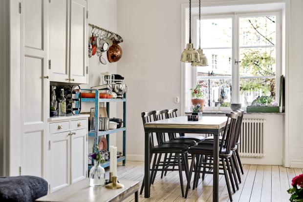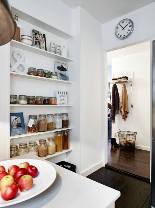 - Для реализации дизайна кухни в скандинавском стиле используйте корпусную мебель светлых тонов, в которой будут храниться предметы кухонного быта.