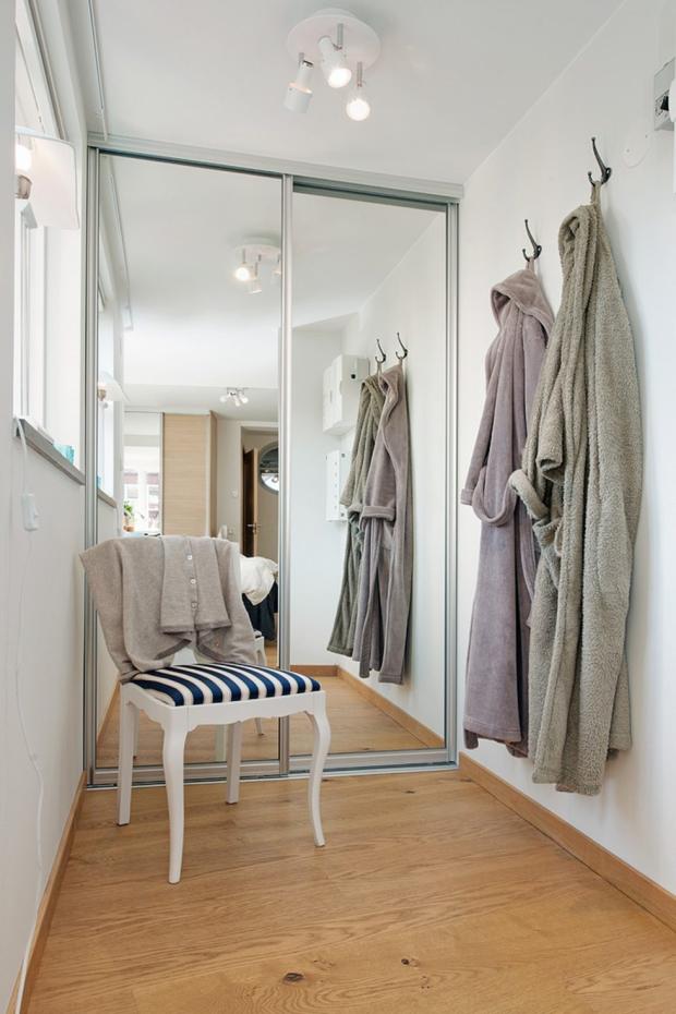 - Одежду и остальные вещи лучше всего хранить в гардеробной или в шкафу с легкими, створчатыми дверками.