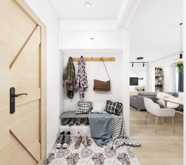 Прихожая в скандинавском стиле в интерьере уже с первого взгляда должна ассоциироваться с практичностью и элегантностью, свойственной жителям Северной Европы. Входная дверь, как и другие двери в скандинавском интерьере, должна быть деревянной. Цвет лака двери – только близкий к природным расцветкам.