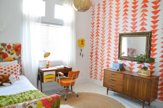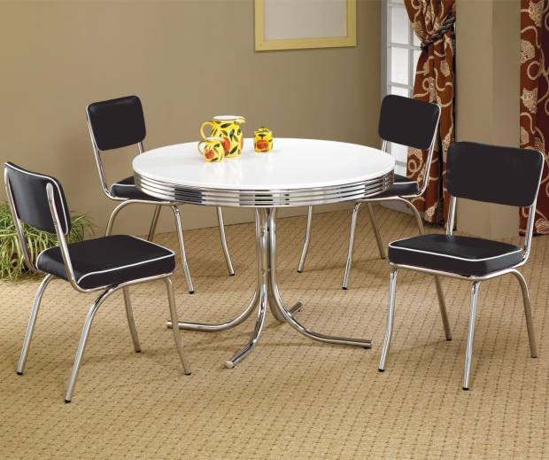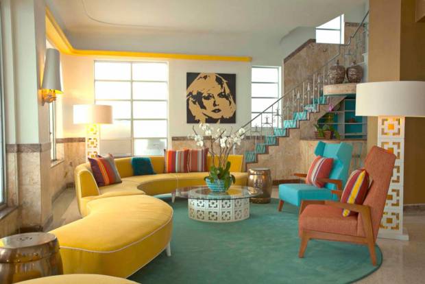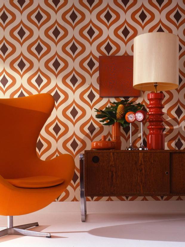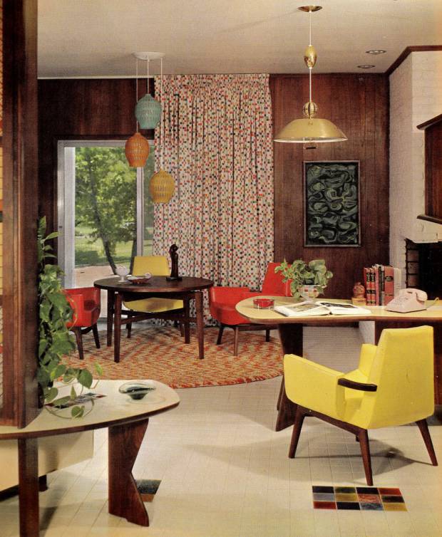 Стиль задорный, смелый и красочный. В этот период особенно активно развивалось автомобильное производство с хромированными деталями. Такое решение стало популярным и в интерьере в сочетании с яркой цветовой палитрой.