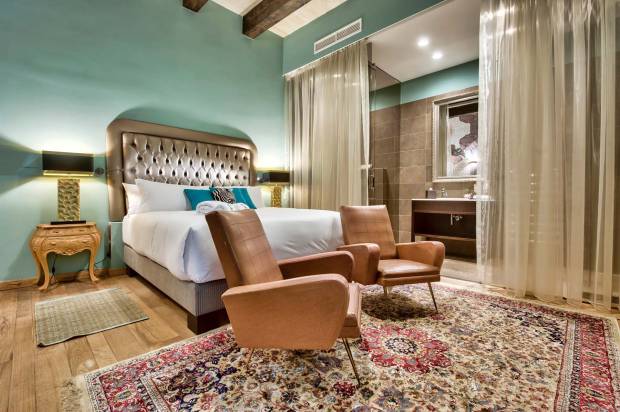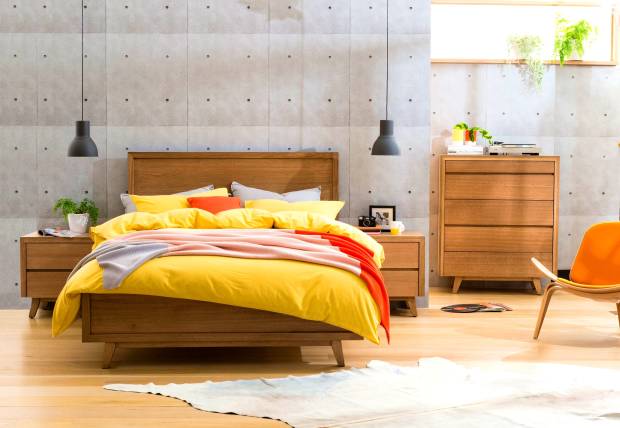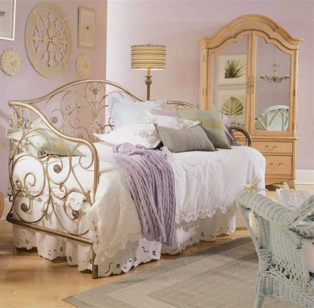 В интерьере спальни ретро царит рационализм и классика: двуспальная кровать правильной формы, по бокам которой две прикроватные тумбы на ножках. Торшер с абажуром мягко рассеивает свет. Дополнять обстановку может кресло-качалка или мягкое кресло, характерное для ретро.