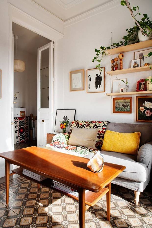 В дизайне интерьеров в стиле ретро 70-х годов актуальны журнальные столики, серванты и барные отделения в стенках.