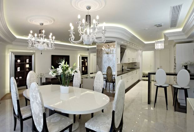 - шикарную люстру над столом,