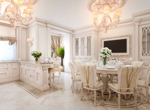 Столовая как отдельное помещение, предназначенное исключительно для трапезы, была атрибутом аристократического особняка еще несколько веков назад. Даже сейчас в большинстве европейских стран кухню предпочитают делать небольшой, а столовая – это особая территория, и никому не придет в голову ущемлять ее в правах. Так принято даже в кругу среднего класса.