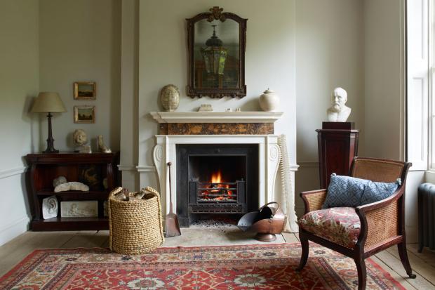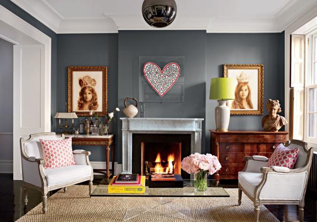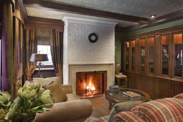 - Обязательный атрибут гостиной – камин. Сверху него располагают полку с декором и фотографиями в рамках (семейные ценности важны).