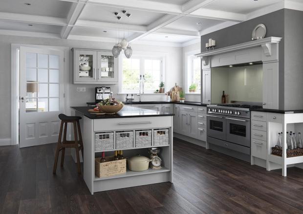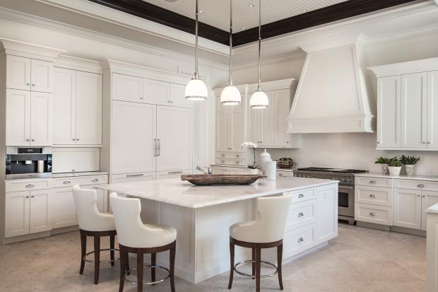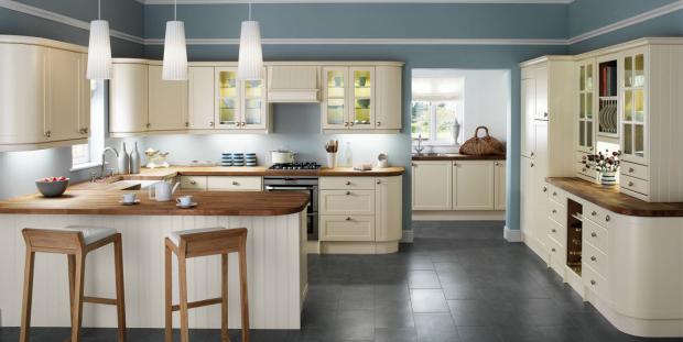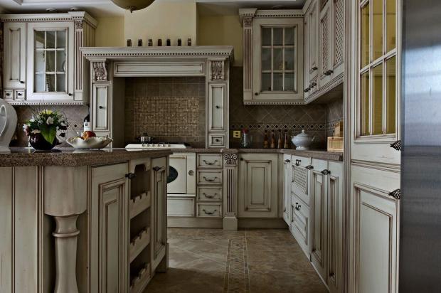 - Кухонный гарнитур из дерева, окрашенного в белый цвет.