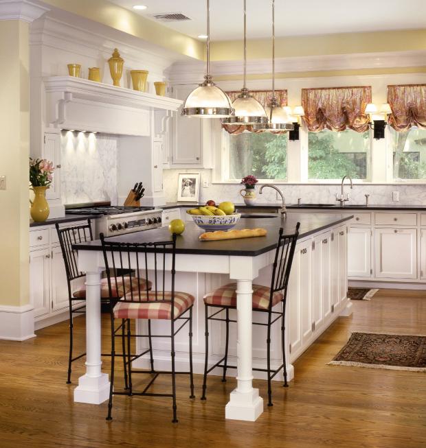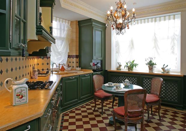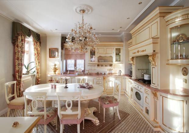 Если позволяет площадь кухни, ее можно поделить на части – зона для приготовления пищи и быстрого обеда и отдельно столовая.