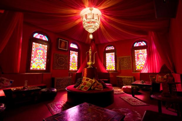 - Витражи в основе из натурального дерева (перегородки, потолки, двери).