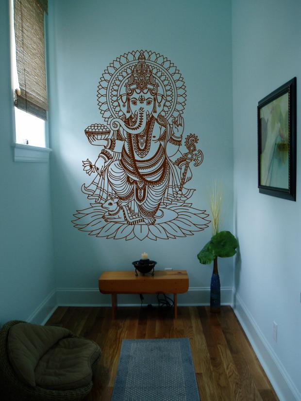 - Индийские предметы интерьера – картины и статуэтки, изделия народного ремесла, балдахины. Особенно популярны изображения слонов, тигров, божеств. В последнем случае, при выборе изображения божества следует быть осторожным. В культуре насчитывается более 1000 божеств, среди которых есть боги жизни и процветания, а также боги смерти.