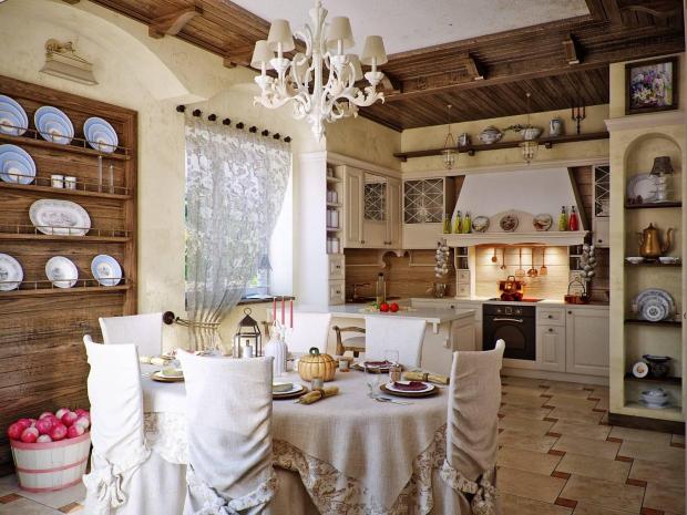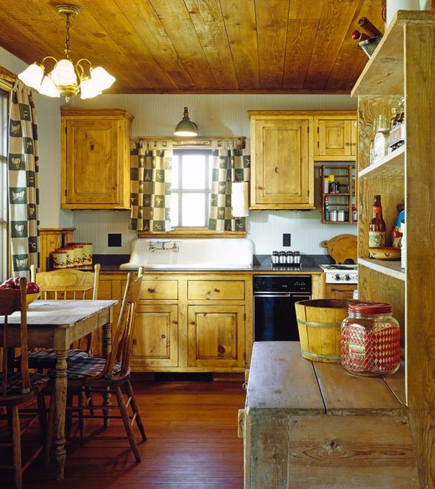 Данная разновидность стиля олицетворяет деревенский лад. Это хороший выбор для оформления интерьера в стиле русской усадьбы. Для реализации направления больше всего подходит загородный дом из натурального дерева. Окна не делают металлопластиковыми или же рамы должны максимально хорошо имитировать дерево. Для оформления и обустройства жилища используются натуральные материалы. Подчеркнет обстановку пэчворк.