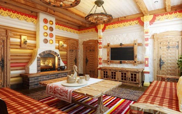 Современный русский интерьер дома а-ля рус нередко нравится не только представителям нации, но и иностранцам, которым по душе русская культура. Его можно обустроить не только в загородном доме, но и в квартире. Даже несколько характерных элементов в помещении внесут необходимые нотки.