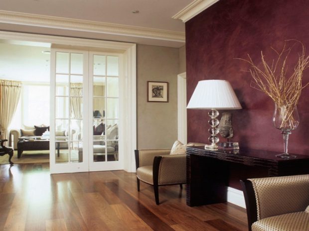 C вишневым оттенком стен хорошо сочетается деревянная мебель всех оттенков, от сосны до темного дуба. Вы можете сделать акцент на мягкой мебели. Марсала хорошо сочетается с цвет зелени, изумрудным, салатовым, а также синим: индиго, цветом морской волны и бледно-голубым.