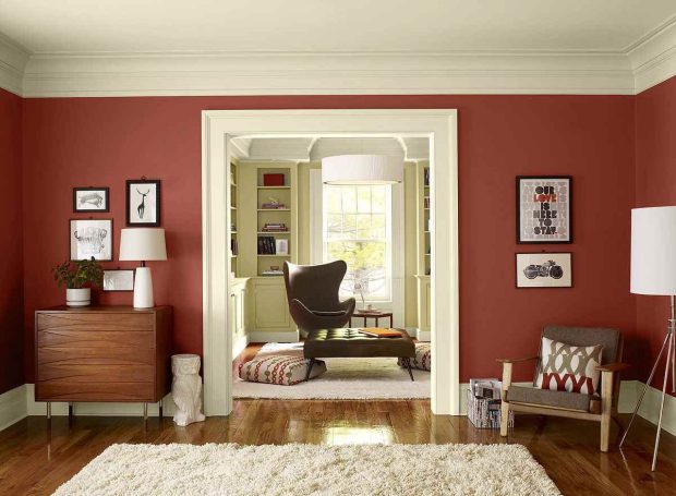 Благородный вишневый придает помещению теплоту и уют. Мягкий насыщенный винный оттенок станет ярким акцентом интерьера. Но здесь нужно быть аккуратнее. Цвет может перетягивать все внимание на себя, поэтому рекомендуем вам оставлять под марсалу только одну из стен, окрашивая оставшиеся стены в белый, серый или бежевый.