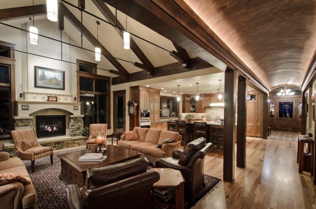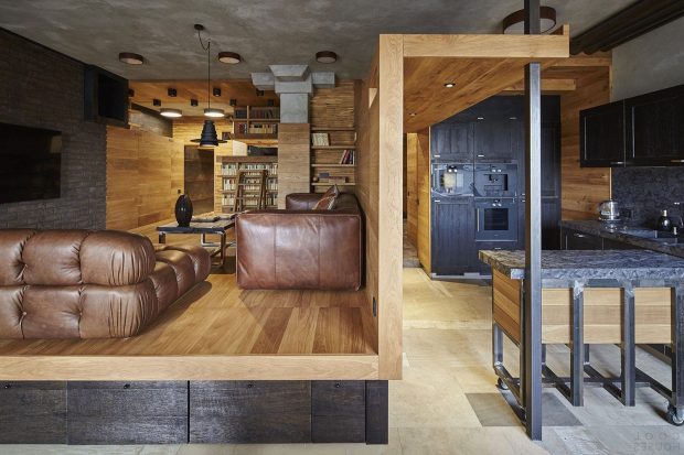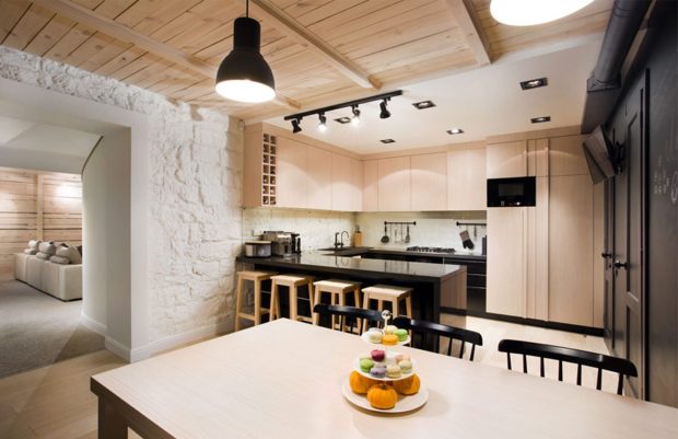 - Дерево старайтесь оставлять в максимально натуральном виде, в современном дизайне оно не терпит больших слоев лака и окраски.