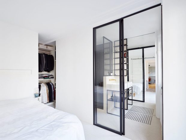Для разграничения пространства подойдут легкие деревянные перегородки со стеклянным наполнением. Здесь ваша фантазия ничем не ограничена.