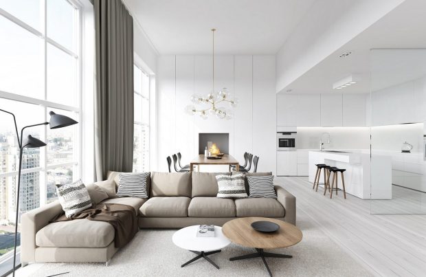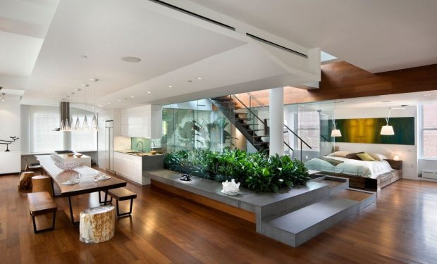 Среди других тенденций интерьера 2017 года все также популярна перепланировка помещений методом сноса ненесущих стен и объединением нескольких комнат в одно большое помещение. Этот прием даст больше воздуха вашей квартире или дому, комната будет казаться просторнее и комфортнее.