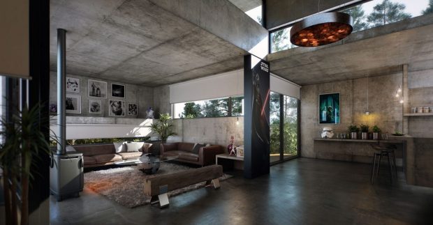 - Грубо обработанные бетонные стены направят нас в сторону минимализма.