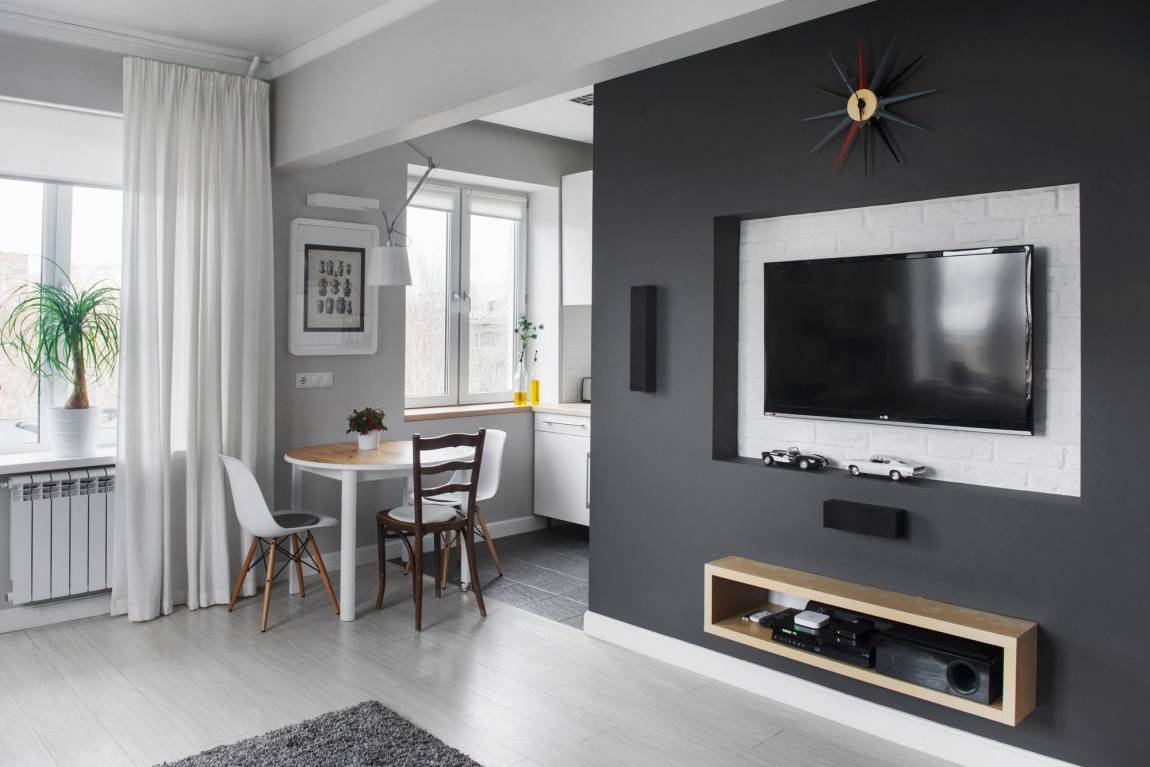 Студия – актуальное и популярное решение для молодых людей. В связи с этим у дизайнеров есть немало идей по ее обустройству. Свободная планировка позволяет создавать современный и функциональный дизайн квартиры студии для семьи.