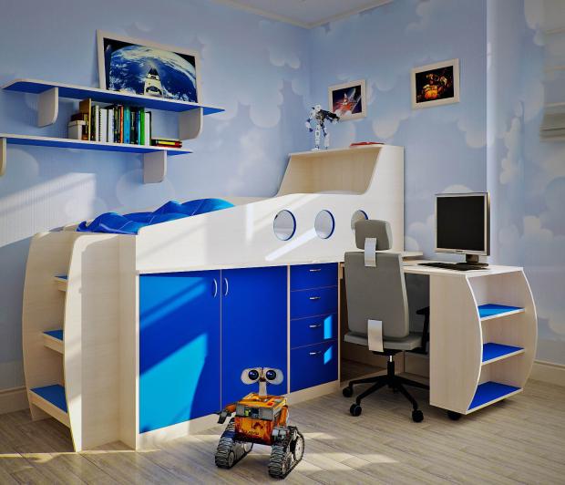 Все же для дошколенка и младшего школьника киберпанк-интерьер в чистом виде не подходит. Однако добавив яркий цвет, в остальном стиль можно выдержать достаточно хорошо: помогут постеры с космическими видами и изображениями различной техники, суперсовременный дизайн мебели, различные игрушки-роботы.