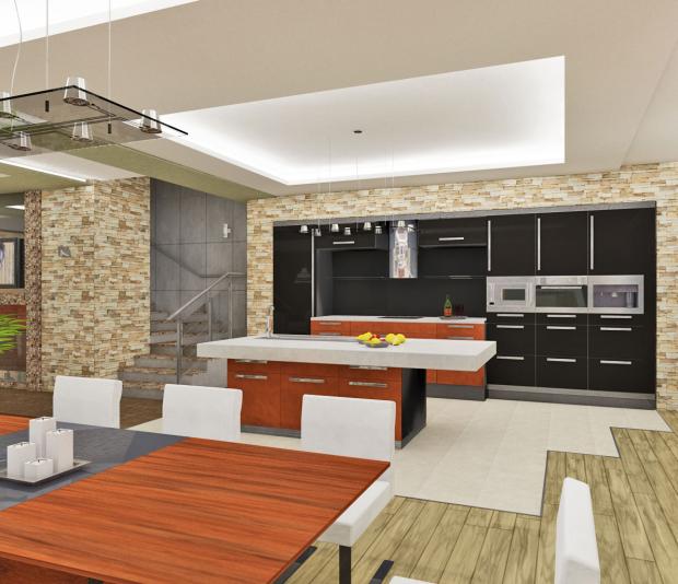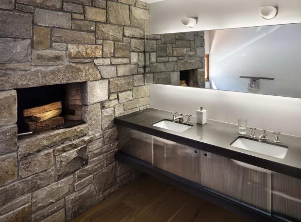 Частым дизайнерским решением являются максимально простые однотонные шкафы, отличного от стен цвета – каждая деталь играет на то, чтобы создать ощущение целостности из множества угловатых сегментов. Кстати, именно по этой причине в стиле прерий, вместо стандартного деления на комнаты с помощью стен, вы можете встретить границы из отделки: кухня с покрашенными стенами, а столовая отделана каменной кладкой.
