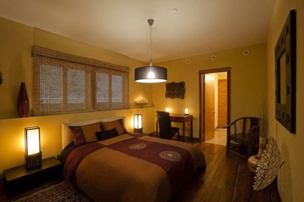 Внутренний дизайн также перенял угловатость и сегментированность внешней архитектуры. Особый антураж могут создать квадратные (или просто угловатые) светильники – они одновременно навевают ассоциации с бумажными фонарями из обихода азиатских культур и подчеркивают строгую геометрию стиля.