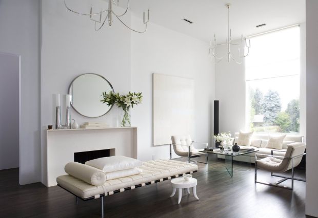 Квадратная комната побуждает следовать симметрии и в меблировке, и в отделке стен, окон